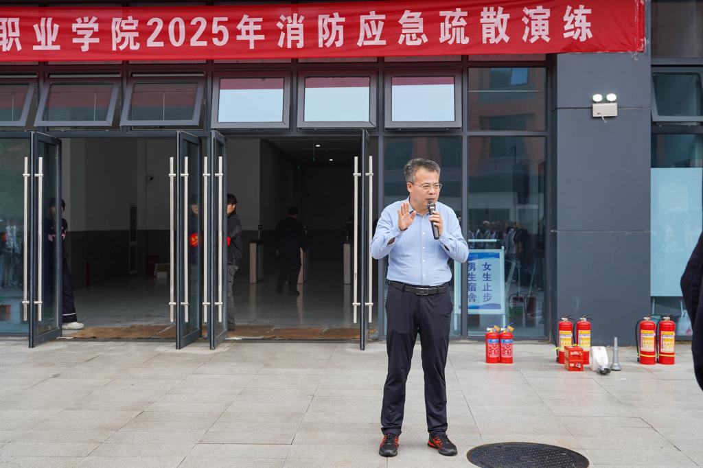 为提升新生应急避险能力,筑牢校园安全防线,9月28日下午14时,学校保卫处联合党委学生工作部、各二级学院组织2000余名2025级新生开展秋季消防应急疏散演练。副校长杨飞出席。